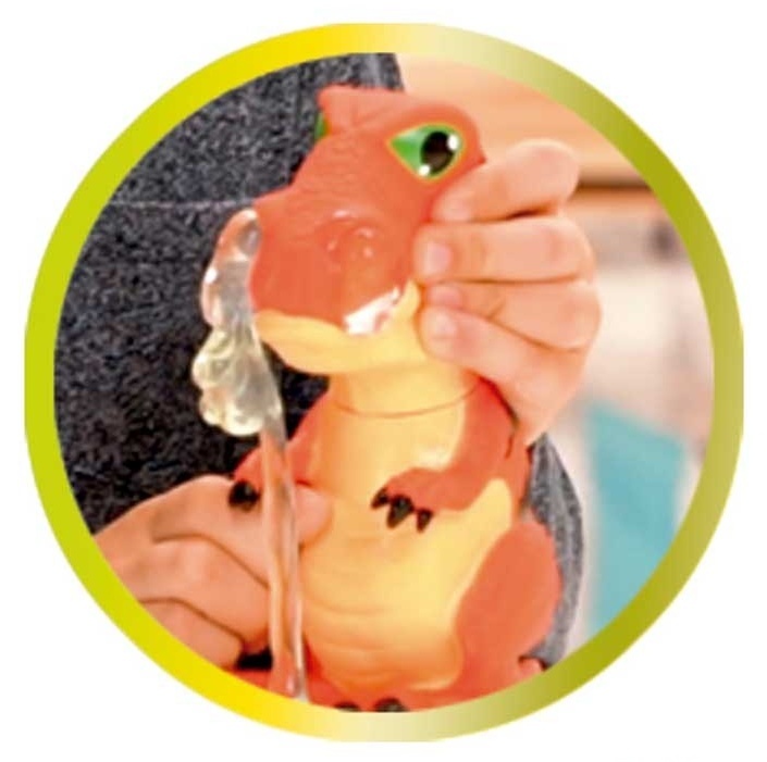 Divertido dinosaurio, si aprietas su cabeza podrás ver como sale el viscoso slime por su nariz. Ideal como regalo original para fans de los dinosaurios.