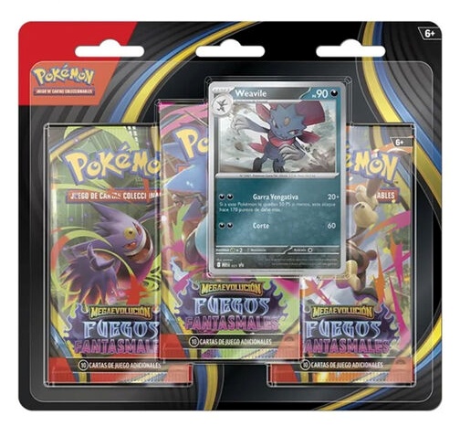 Incluye: 3 paquetes de refuerzo Pokémon TCG, 1 carta promocional, 1 carta con código para el Juego de Cartas Coleccionables Pokémon Live.