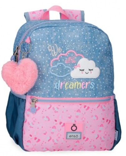 Preciosa mochila infantil con el mensaje “We should all be dreamers”. Incorpora un bonito pompón con forma de corazón en el cierre de cremallera.